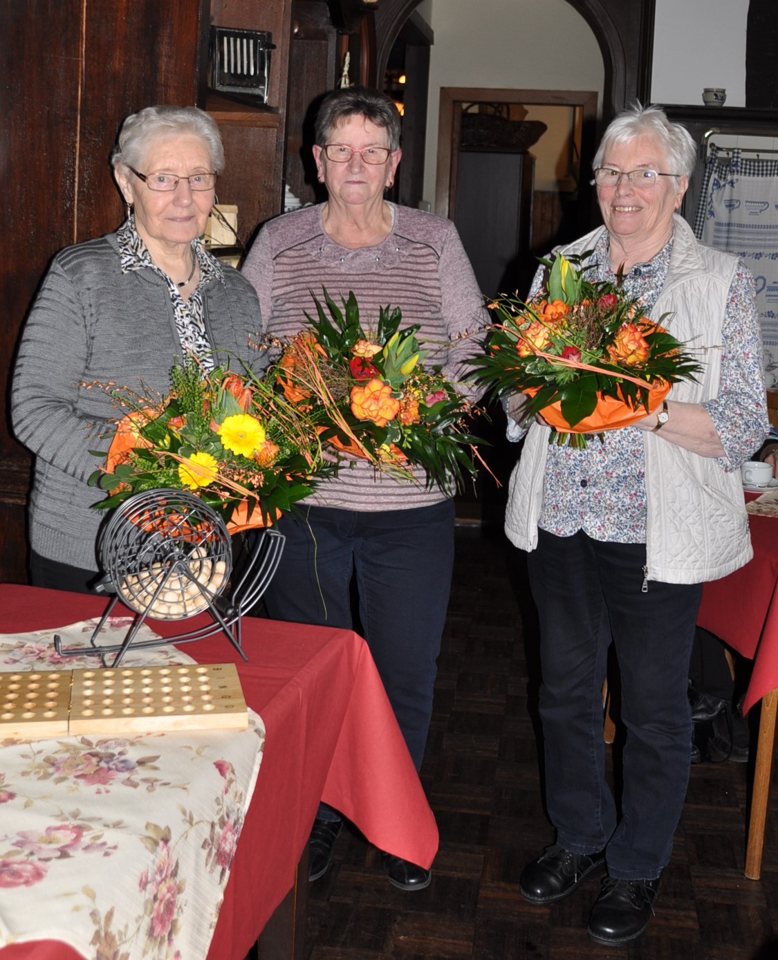 Für die meisten Teilnahmen am Bingo-Nachmittag erhielten v.l. Hertha Oldenettel, Helma Bauermann und Anna Coordes einen Blumenstrauß. |